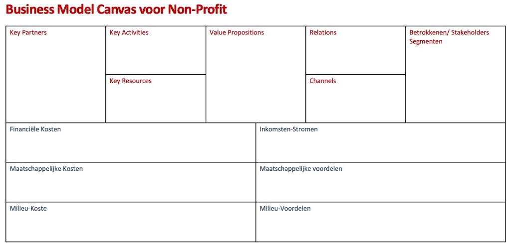 Het Business Model Canvas (BMC) is ontwikkeld voor Business, dus voor profit-bedrijven. Toch kan het BMC ook handig zijn voor non-profit organisaties.