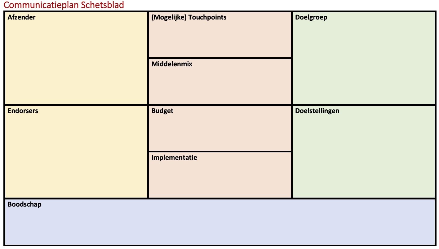 De Kern van een Communicatieplan bestaat uit de volgende onderdelen: