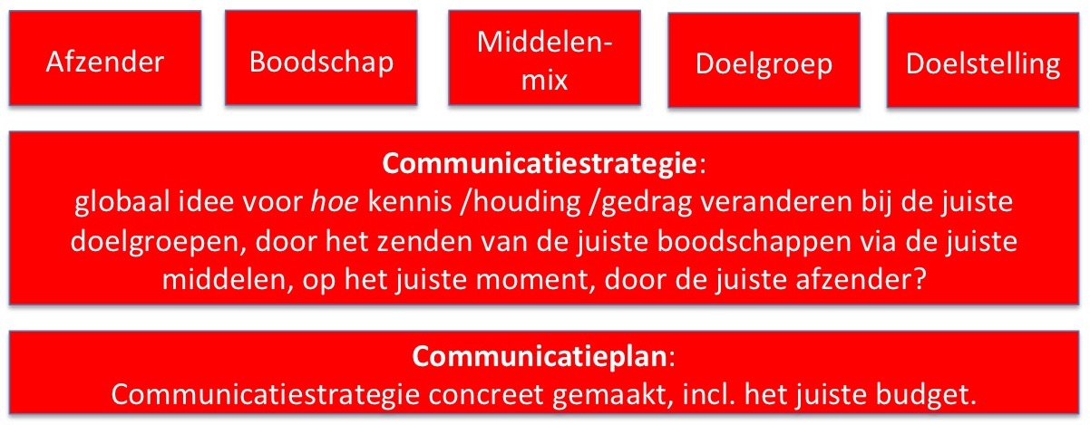 De kern van een Communicatieplan is de Communicatiestrategie. De Communicatiestrategie bestaat uit de vijf elementen van Lasswell’s verbale Communicatiemodel. In het Communicatieplan worden deze onderdelen concreet gemaakt.