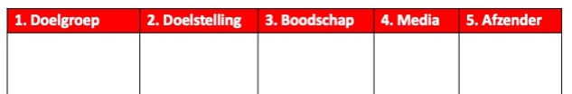 • Wat moet de Ontvanger weten en voelen over het product/ merk, zodat hij zijn gedrag zal veranderen naar het gedrag dat jij wil.