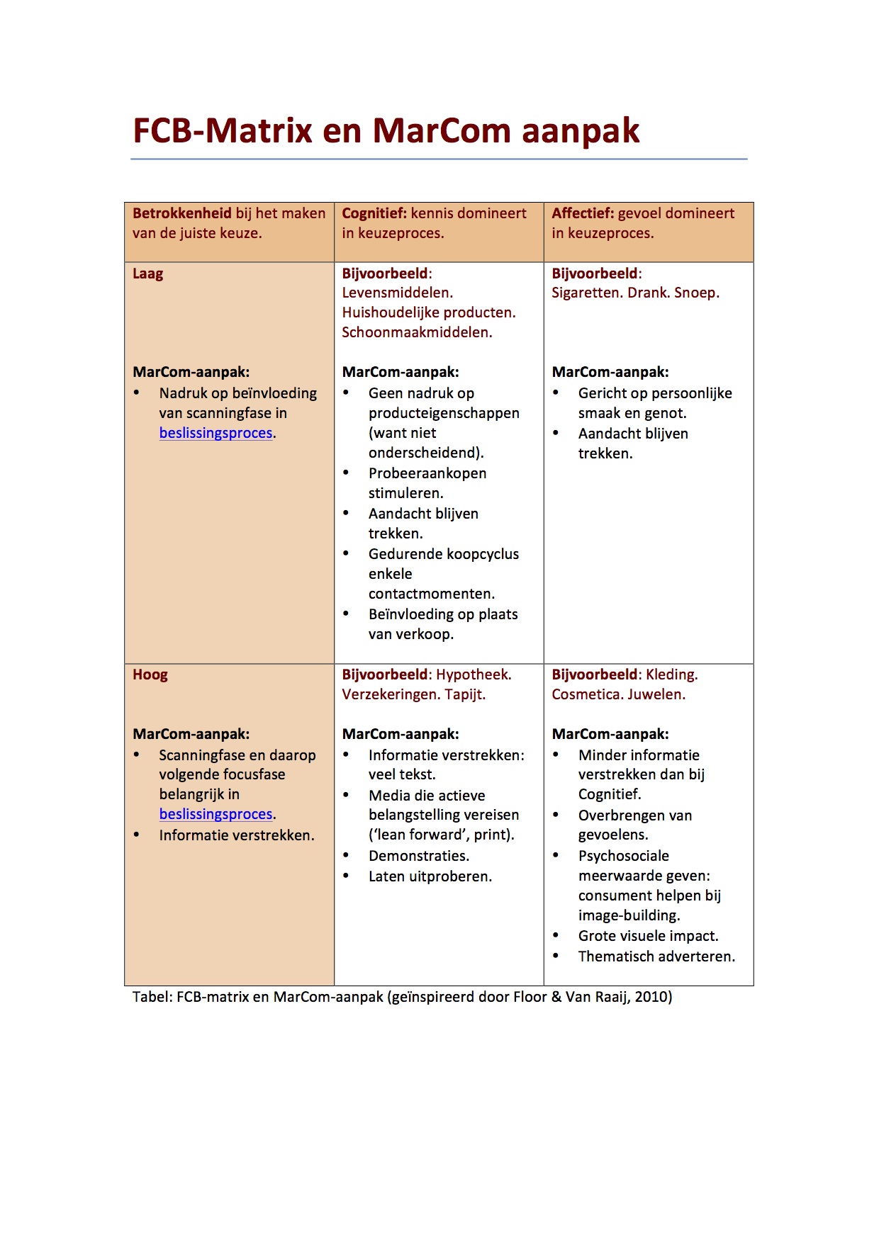 Tabel: FCB-matrix (bron: Floor & Van Raaij)